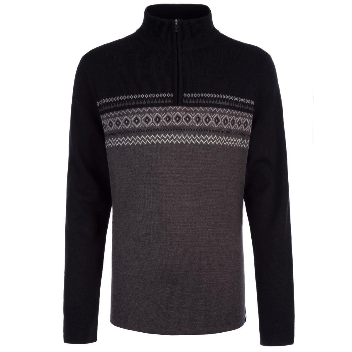 The new Stefan 1/2 zip mens ski sweater mixes two tone coloration with classic Nordic detailing for a handsome apres look in the ski lodge. Fine merino blend knit is sturdy and easy care. Meister label.